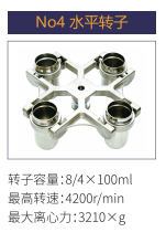 No4 | 水平轉子 | 8/4x100ml | 4200r/min | 3210xg |