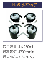 No5 | 水平轉子 | 4x250ml | 4200r/min | 3230xg |