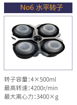 No6 | 水平轉子 | 4x500ml | 4200r/min | 3400xg |