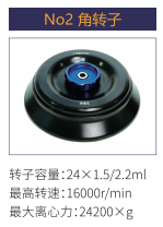 No2 | 角轉(zhuǎn)子 | 24x1.5/2.2ml | 16000 r/min | 24200xg |