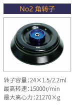 No2 | 角轉(zhuǎn)子 | 24x1.5/2.2 ml | 15000 r/min | 21270xg |